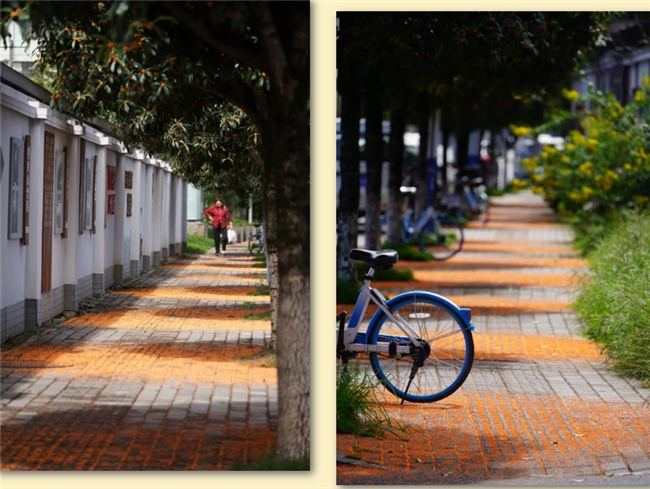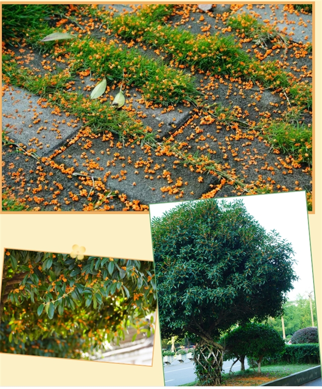秋日午后的阳光透过叶片,把金桂的影子筛在青路上,行人走过,衣角便沾了满身甜香。