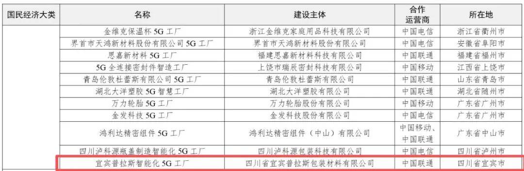 9月2日,国家工业和信息化部正式公示《2025年5G工厂名录》,四川省宜宾普拉斯包装材料有限公司的“智能化5G工厂”成功入选,成为本年度宜宾市唯一入选企业。
