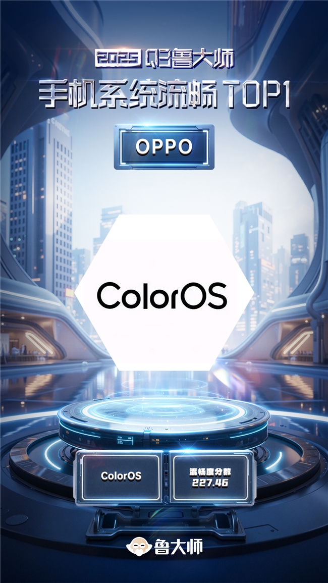 ColorOS以227.46流畅分数创造历史新高,位于系统流畅榜首,同时ColorOS达成鲁大师季度系统流畅榜五连冠,其流畅度含金量不言而喻。