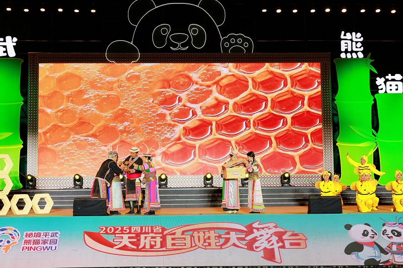 10月10日晚,由四川省文化和旅游厅、绵阳市人民政府主办,四川省文化馆、绵阳市文化广播电视和旅游局、平武县人民政府承办,绵阳市文化馆协办的2025年四川省“天府百姓大舞台”绵阳遂宁广元片区汇演活动在绵阳市平武县白马藏族乡精彩上演,本次活动也得到遂宁市文化广播电视体育和旅游局、广元市文化广播电视和旅游局的大力支持。来自绵阳、遂宁、广元的群众演员带着自编自导的节目登上舞台,充分展现了文化惠民工程在基层结出的丰硕成果,为“锦绣天府·安逸四川”建设注入了蓬勃的群众文化活力。
