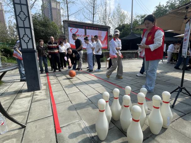 现场设置了五大游戏体验区。“趣味保龄球”中,志愿者通过语言描述协助盲人朋友完成投掷;“穿越障碍”环节,细致的方位提示确保了安全通行;“闻香识物”则调动嗅觉辨识花椒、醋等物品,现场笑声不断。“丢沙包”“塞铅笔”等游戏更注重触觉与协调性的配合。