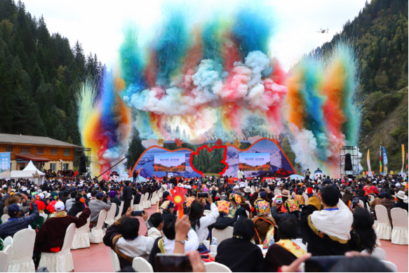 开幕式文艺演出以“雪山彩林”为天然背景,分为《开坛迎宾》《生态家园》《“非遗”掠梦》三大篇章。