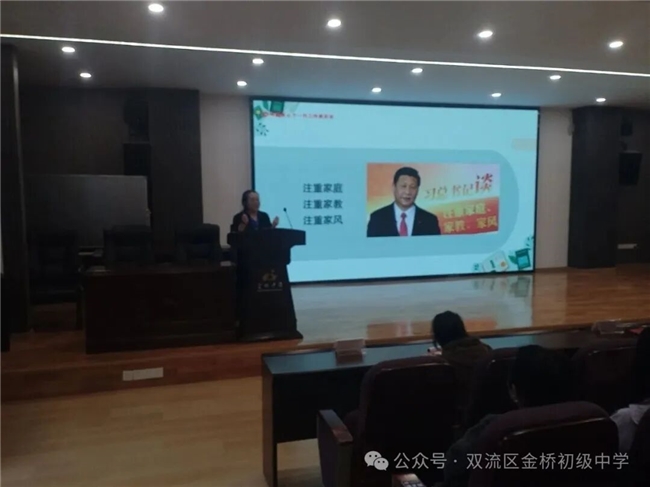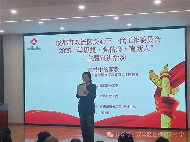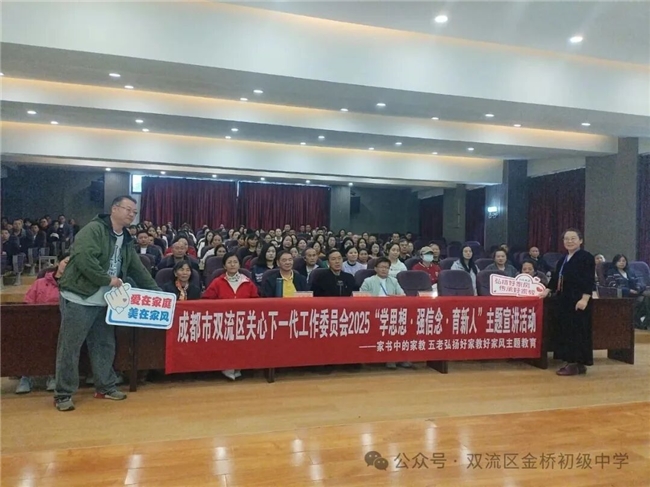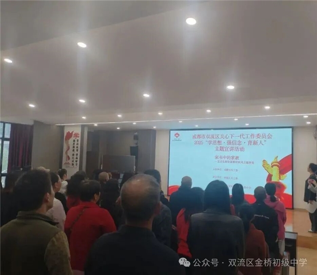 2025年10月21日下午,由市、区、镇三级关工委联合主办的“五老弘扬好家教好家风”主题教育宣讲活动在金桥中学玉祥楼顺利举行。本次活动以“家书中的家教”为主题,吸引了学校家长积极参与。