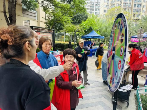 本次活动通过整合社区资源、链接专业服务,构建“便民-健康-安全”三位一体的助老关爱行动,现场设置有磨刀、洗鞋、洗锅等便民服务区;测量血压血糖、健康咨询的义诊服务区以及老年安全主题游戏区。社工结合敬老月主题,组织金竹关爱服务队开展老年人防诈骗、交通安全、消防安全等游戏,通过互动性强的主题游戏,调动小区老年人的参与积极性。老人们通过参与各项游戏赢得套圈,再用套圈去套取物业精心为大家准备的白菜、萝卜、土豆、辣椒、西红柿等新鲜蔬菜,让老人们既享受了过程中游戏的乐趣,又能把实用的食材带回家。参与活动的张奶奶同社工说道:“这个还有点好耍,怪不得娃娃些都喜欢套圈圈呢,还给我们发菊花茶,真的把我们当娃娃了!”居民们对这样的活动形式都给予高度评价,希望社区能多多开展类似活动。