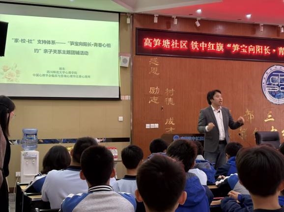 为构建“家-校-社”三位一体的儿童成长支持体系,聚焦青少年心理健康关爱与情绪管理、亲子沟通能力提升,2025年10月27日下午,由高笋塘社区居民委员会主办、成都市金牛区四叶草社会服务中心承办、成都市第三十三中学校协办的2025年笋宝资源联盟·高笋塘社区“笋宝助长·童叟团”项目系列活动走进辖区学校。社区网格员、微网格员及三十三中学校心理老师全程参与组织协调,活动特别邀请四川师范大学心理学院国家二级心理咨询师胡东全程指导,以专业赋能与互动体验相结合的方式,助力青少年破解成长困惑、提升心理素养,护航身心健康发展。