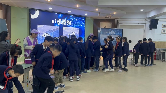 活动以“沉浸式玩转AI黑科技”为主线,设置了五大体验区,包括AI机械狗互动、下棋机器人对抗、VR灾难逃生模拟、激光雕刻、千人震、家庭教育机器人等。学生们在科技志愿者的引导下,亲手操控机械狗、与机器人对弈、在虚拟现实中学习逃生技能,与“太空人”对话探索宇宙奥秘,现场气氛热烈,互动不断。