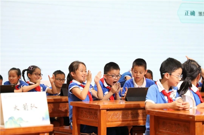 为进一步点燃全场氛围,活动特别设置了观众互动环节。台下观赛的同学热情高涨,纷纷举手参与互动,抢答热情丝毫不逊于场上选手。他们的精彩回答,多次将活动氛围推向新高潮。这一环节不仅活跃了现场气氛,更充分彰显了棠小学子对诗词文化的浓厚兴趣与积极参与的热忱,让“人人爱吟诗词、处处讲普通话”的校园氛围愈发浓厚。