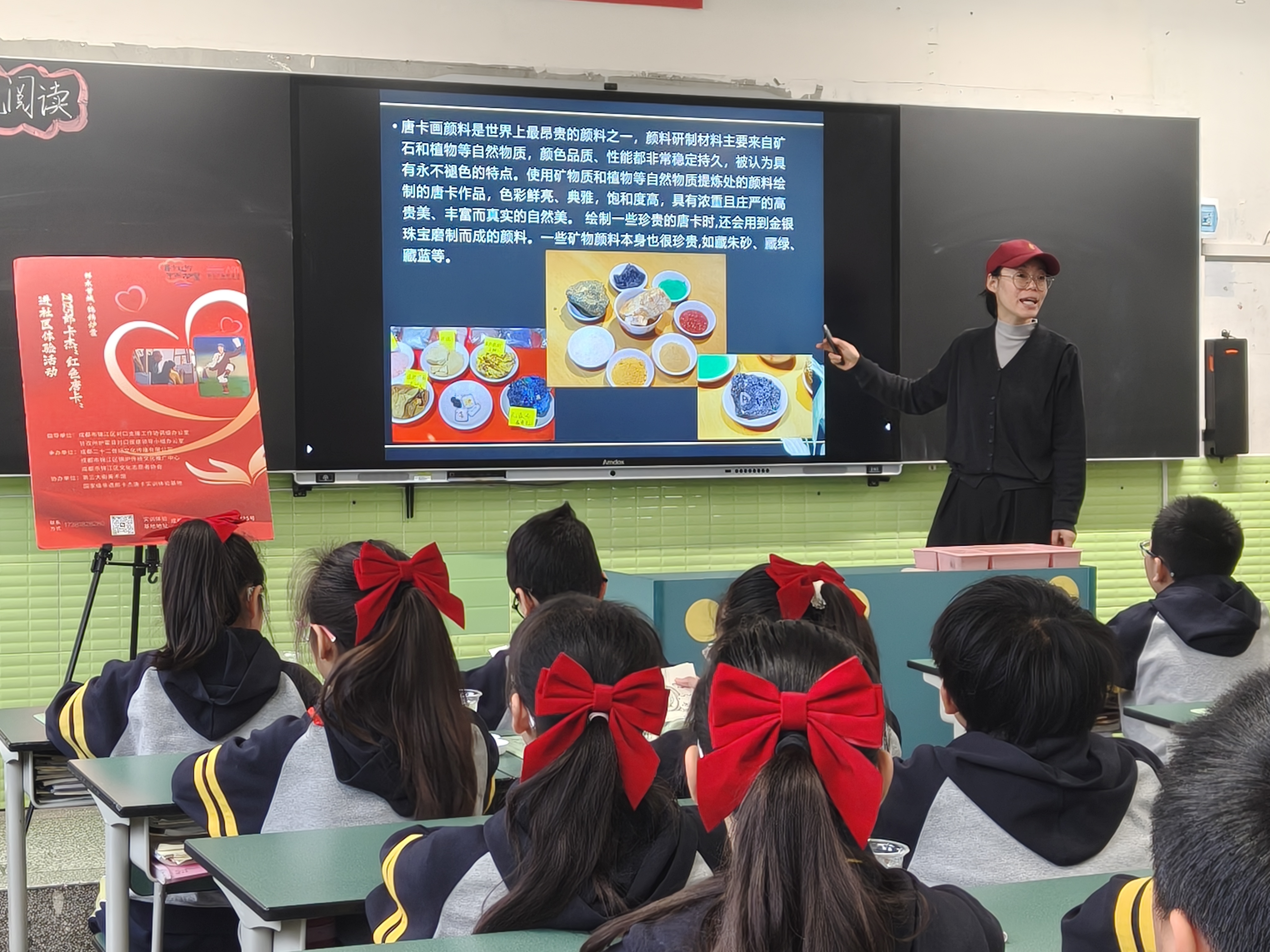 10月29日,为弘扬中华优秀传统文化,推动非物质文化遗产融入青少年教育,一场别开生面的国家级非遗郎卡杰唐卡“红色唐卡进校园”体验活动在锦江区三圣街道白桦林路社区辖区锦江区成都师范附属小学三圣分校开展。本次活动得到了白桦林路社区和锦江区成都师范附属小学三圣分校的大力支持。学校组织了40余名儿童参与,通过沉浸式体验与互动教学,让孩子们近距离感受唐卡艺术的独特魅力。