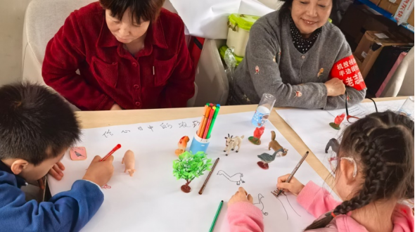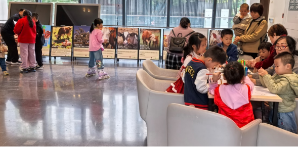 孩子们在观看科普海报后,用彩笔和动物模型描绘并搭建出心中“理想的农场”。这一环节不仅激发孩子们的想象力,也让他们在创作中思考人与自然和谐共处的可能。