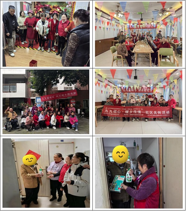 在特殊群体帮扶方面,经天社区联合益民养老及志愿者团队,重点聚焦高龄、残疾、独居等特殊老年群体,开展"重阳暖心上门"专项行动——活动前期,社区通过网格摸排与居民议事会梳理,精准定位7户高龄党员、重度残疾的老人家庭,活动当天,由社区工作人员、社工、医护人员及志愿者组成的"暖心小分队"兵分多路,带着定制化重阳节礼物上门走访,为他们送上重阳温暖。通过"需求精准对接+物资个性配送+情感深度陪伴"的帮扶模式,切实解决了特殊老年群体的实际困难,让重阳节的关怀真正"走"进家门、"暖"到心里。