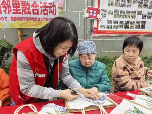 为了促进宏景园小区居民的沟通交流,增强居民对小区的认同感和归属感。2025年11月13日上午,竹园社区联合成都市成华区和悦社会工作服务中心共同开展主题为“巧手焕新颜·邻里共温情”的邻里融合活动,现场设置蝶古巴特包制作工作坊与便民服务集市两大互动区域,通过创意手工与贴心服务的结合,为社区注入冬日暖意。