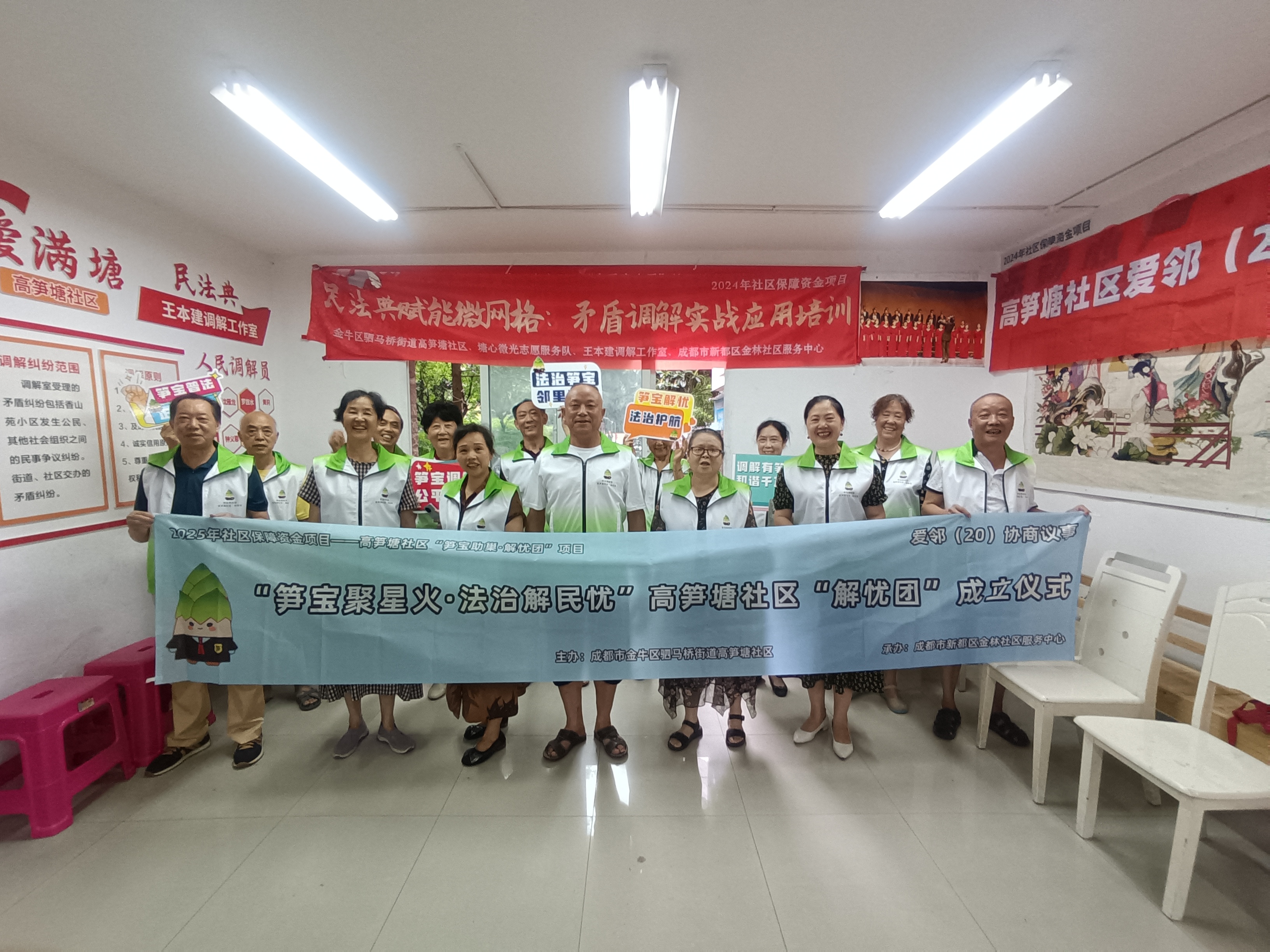 近日,成都市金牛区驷马桥街道高笋塘社区“笋宝解忧团”正式成立。这支由退休法官、社区微网格员、居民骨干等组成的“法治生力军”,将通过“IP形象+专业调解+场景创新”模式,破解“老龄化+商居混杂”社区的治理难题,让法律服务真正走进院落、贴近居民。