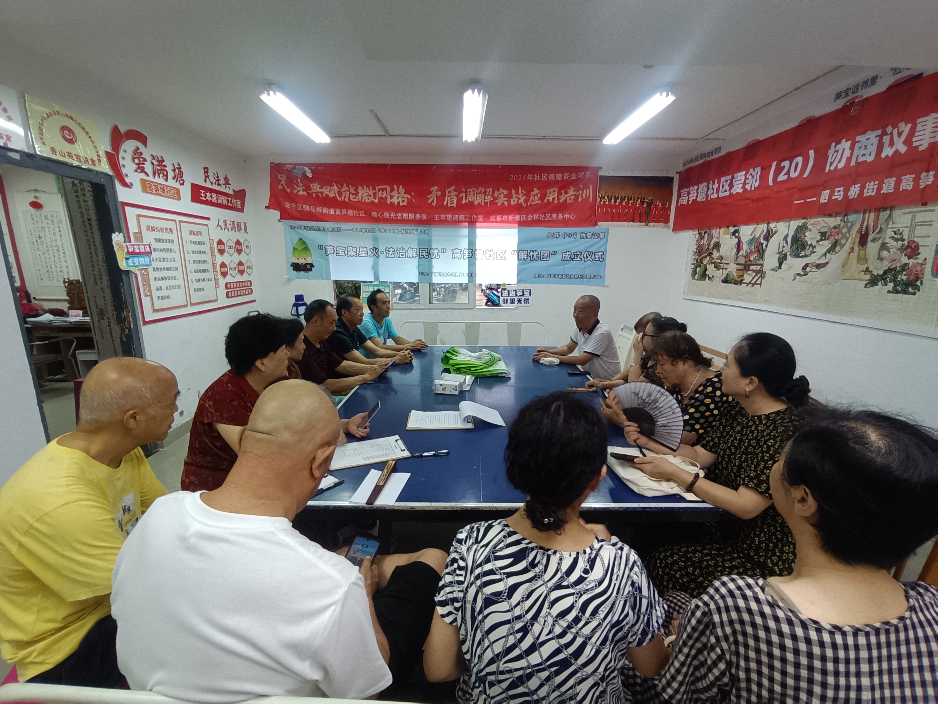 在香山苑活动室举行的成立仪式上,15名正式成员通过“爱邻协商议事机制”投票选出团长1名,并分设“儿童调解组”“妇女调解组”“综合调解与支持组”。儿童组聚焦校园纠纷、亲子矛盾,妇女组主攻婚姻家庭、消费维权,综合组负责物业、邻里等复杂矛盾调解。