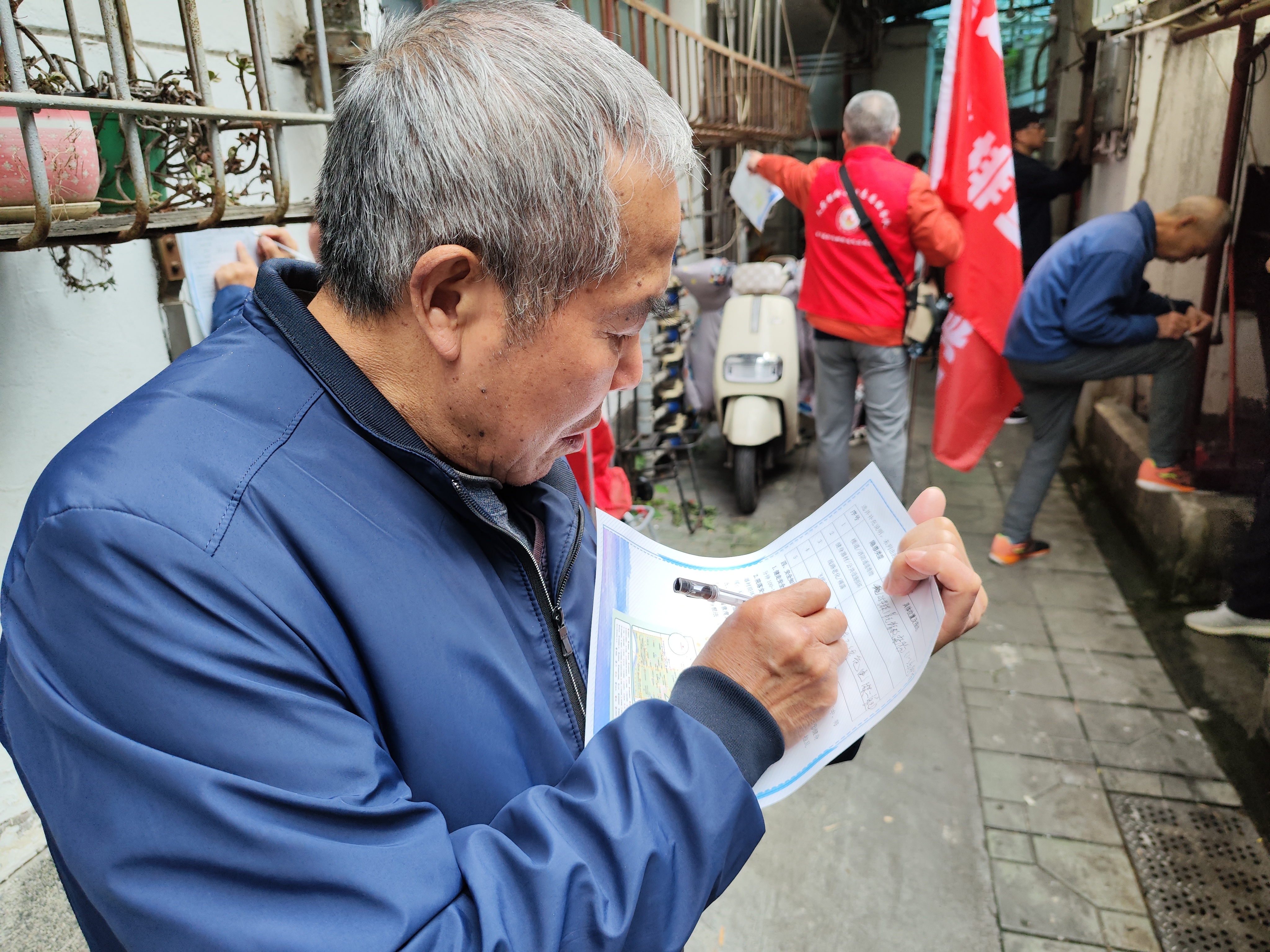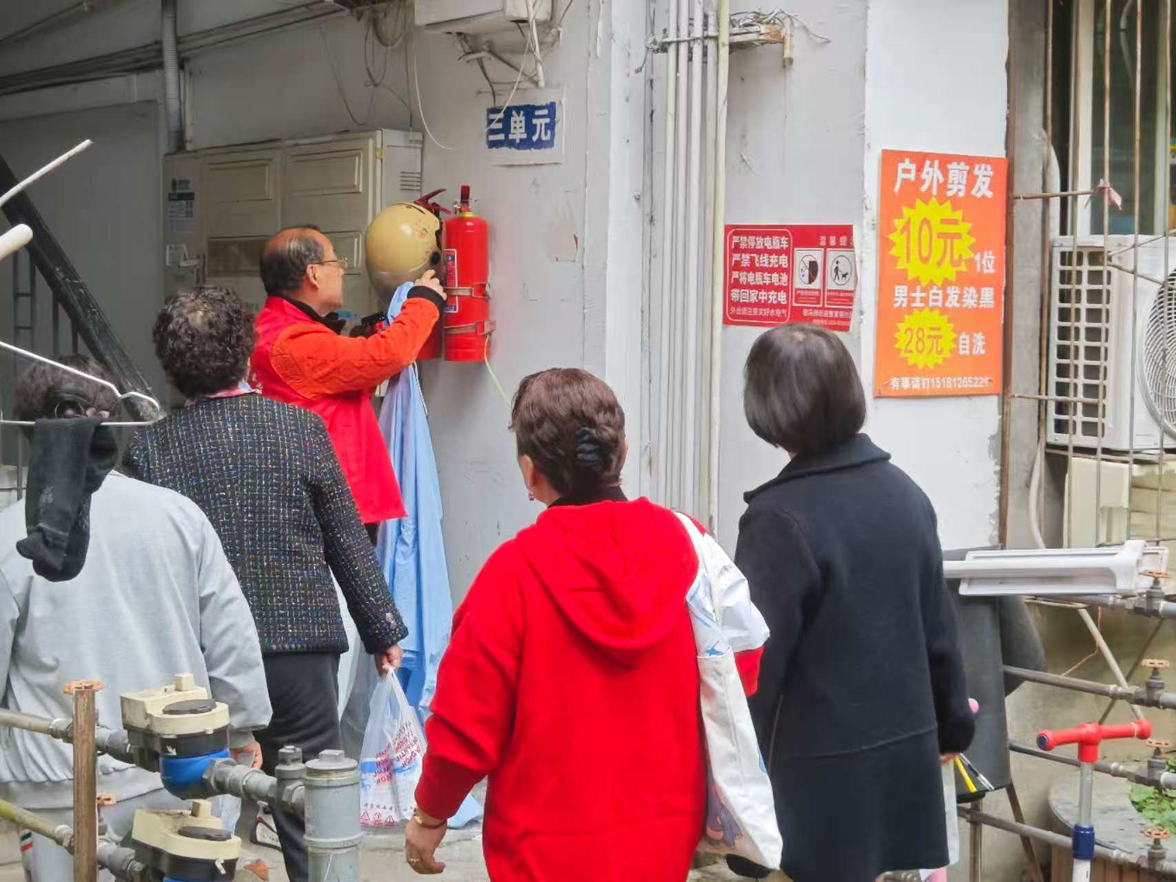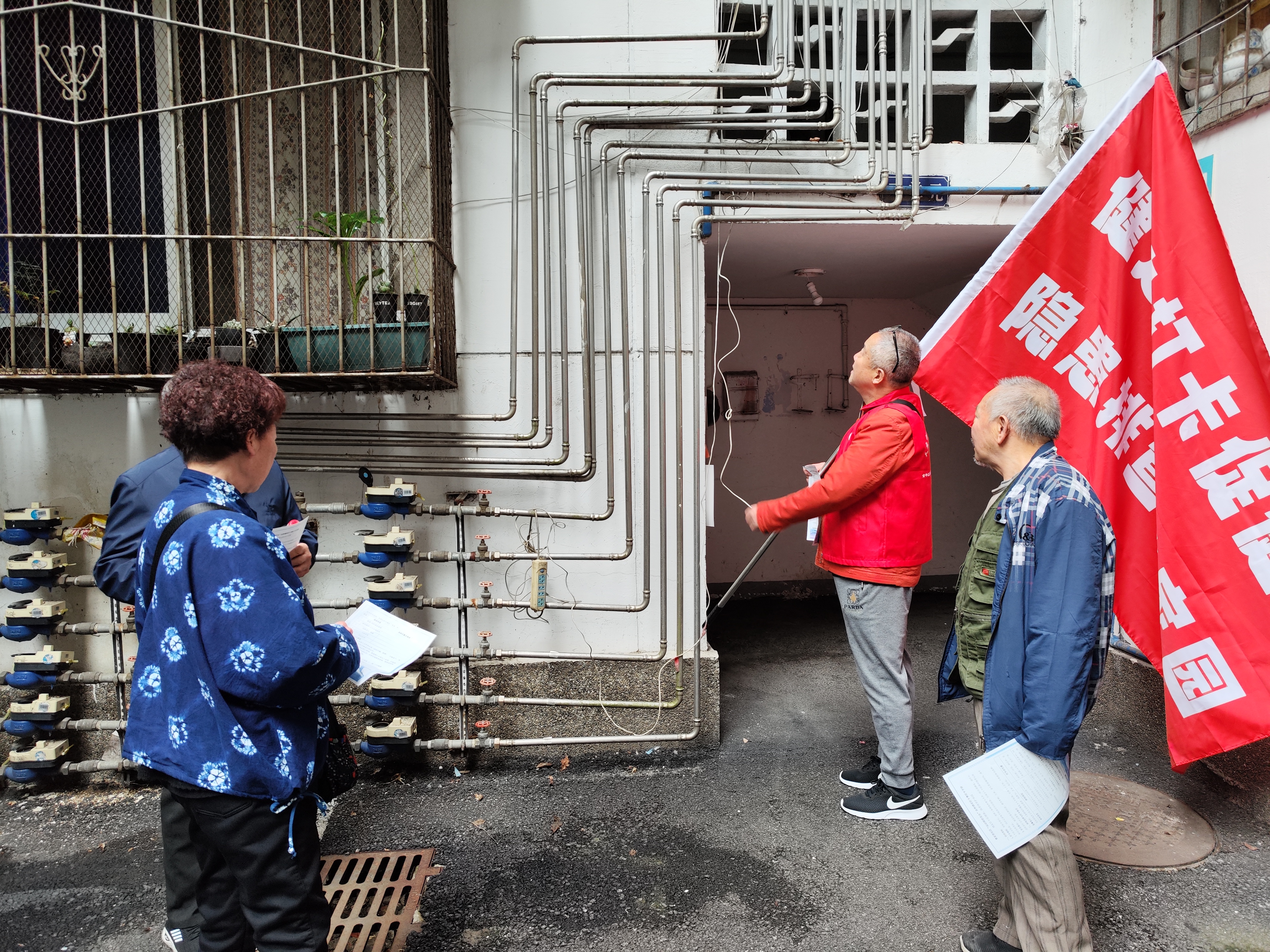 活动流程环环相扣,参与体验层层升级。居民签到后领取定制打卡手册,按所选路线有序出发。行进中,大家化身“社区安全观察员”,细致排查院落公共区域隐患——发现楼道堆放杂物、健身器材零件松动、窗台飞线充电等问题时,立刻在手册“隐患排查任务表”中详细记录位置、描述问题,不少居民还主动拍摄现场照片辅助说明,排查细致度十足。