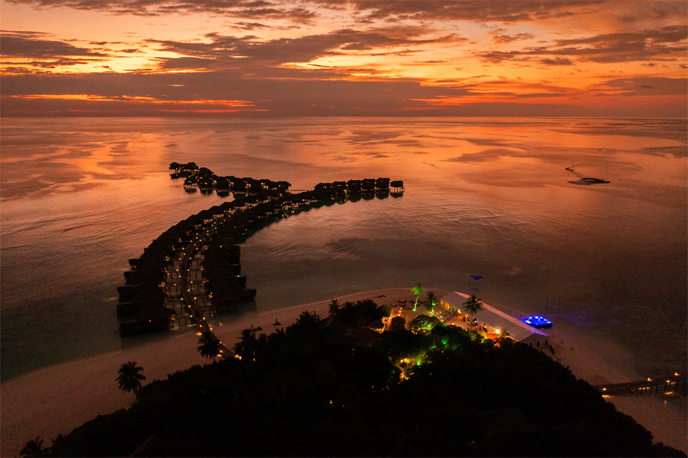 马尔代夫瓦卡鲁度假村节日季晚霞