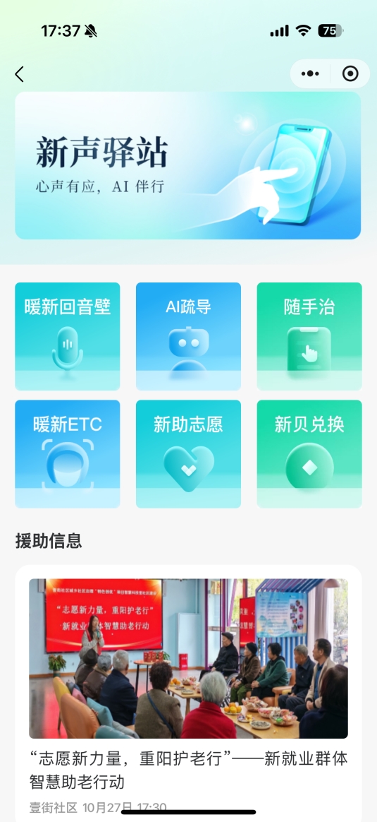 在壹街社区“爱满重阳”活动现场,“新助志愿队”的骑手们正俯身为老人演示智慧手环使用。这支由外卖员、快递员等组成的队伍,借助“暖新ETC”与“新声驿站”两大场景,从“服务接收者”转变为“治理参与者”。他们作为“移动观察员”,已参与3次助老服务、15次隐患排查,成为社区治理的有力补充。