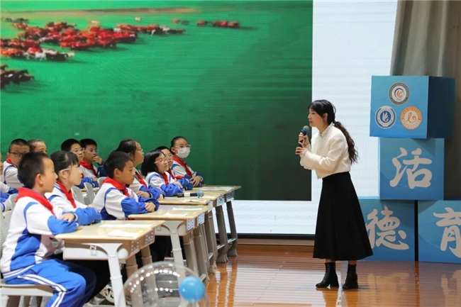 成都市双流区棠湖小学党支部书记、校长杨柳致欢迎词,并介绍本次活动以“大思政・活德育——构建协同育人新样态”为主题,就是要聚焦大思政,以“破壁”的勇气和“创生”的智慧,打破家庭、学校、社会之间的壁垒,构建家校社协同育人共同体。活动中将分享棠来自两个工作室的“主题微班会”融思政的生动案例和“三联”模式促协同育人教联体建设的初步探索和实践经验。