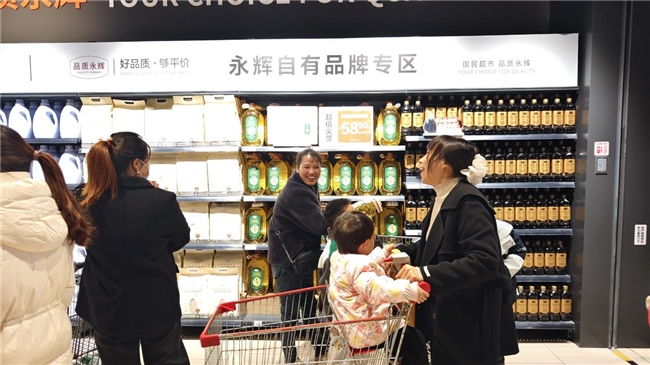 熟食烘焙区作为门店最具烟火气的流量核心,金秋丰收的喜悦、葡式蛋挞、山茶花山泉吐司等烘焙产品广受欢迎,双汇卤甜肠、奥尔良烤鸡等人气熟食同样热销。备受消费者青睐的还有永辉自有品牌“品质永辉”系列商品,其严格遵循胖东来“DL”系列开发标准,强调品质与价格平衡。例如品质永辉头道特级生抽,仅萃取第一道原汁,采用传统工艺足期发酵,实现特级品质与减盐健康;YONGHUI东北长粒香大米产自黄金水稻带,以产地优势保障米粒饱满、口感香甜,持续赢得县域消费者信赖。