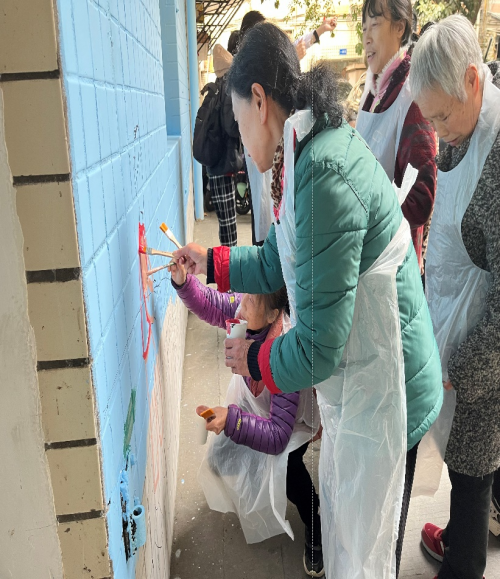 为持续深化“微更新 共治理”社区参与式营造治理理念,将院落环境整治与文化营造深度融合,南站社区于2025年11月24日正式启动“墙绘传情,院落焕新”主题活动。活动以院落墙体为载体,通过“专业指导+居民共创”的模式,用色彩点亮公共空间,用艺术传递社区温度,推动院落环境从“洁净”向“精致”升级,进一步激发居民参与社区治理的内生动力。