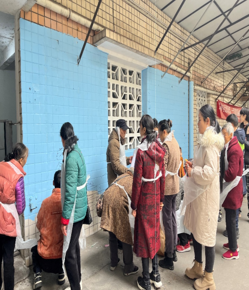 活动前期,社区基于此前洁净院落行动的基础,通过线上问卷、线下座谈等方式广泛征集居民对墙绘主题、风格、内容的意见,最终确定“邻里和睦”“院落融乐”两大核心主题。社区特邀专业美术老师组成指导团队,结合院落建筑特色与居民建议,完成墙绘设计方案。