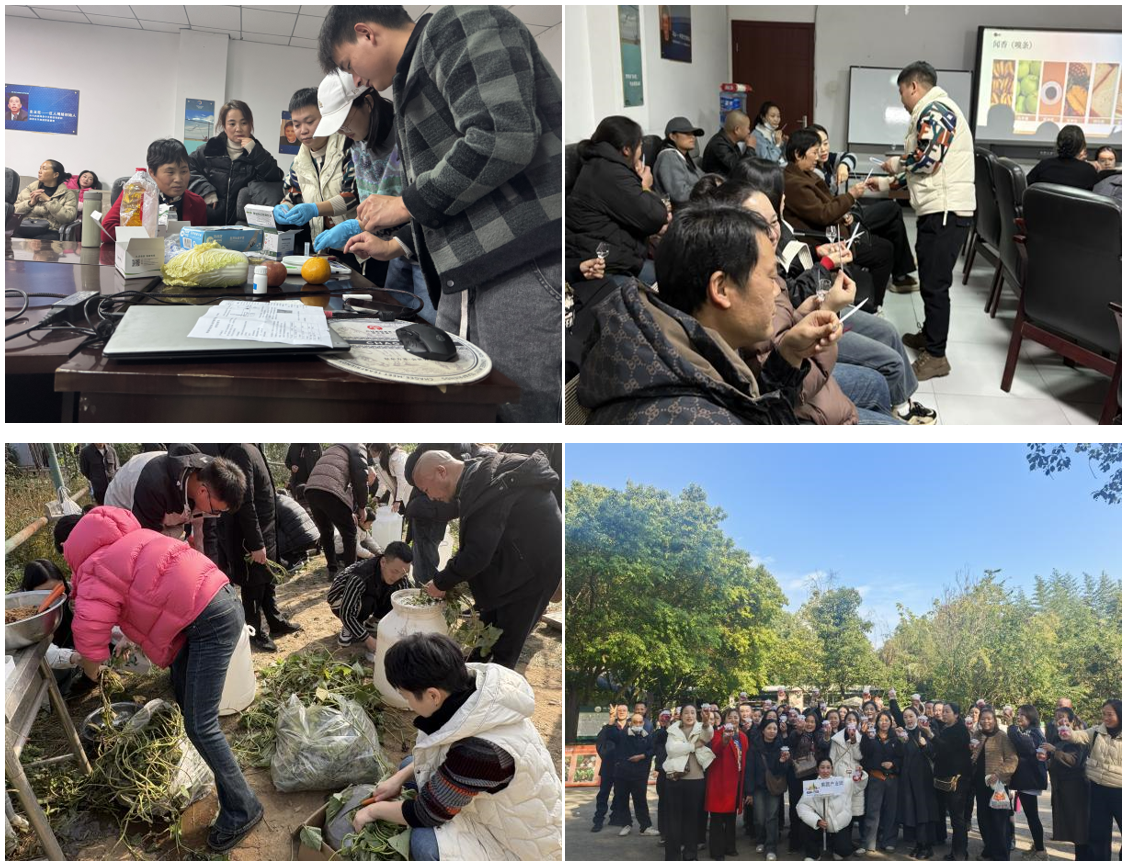 产业链上拓技能。在四川源坤国科质量检验有限公司,学员系统学习粮食酿酒原理与农产品质量鉴定知识,通过专业仪器实操掌握农产品快速检测技巧,既懂生产又会质控的复合型技能让学员受益匪浅。而在大邑县苏家乐天派家庭农场,“有机绿色发展”主题培训趣味十足,粮油班学员跟着农场主学习酵素制作工艺与石磨豆浆传统技法,果蔬班则专注于泡菜制作实践,将绿色生产理念与传统农产品加工技艺深度融合,拓宽了产业增值思路。