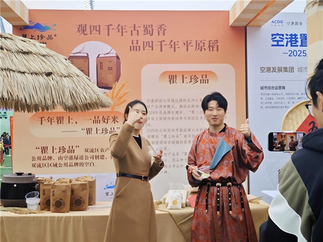 “这大米包装风格古朴典雅,与双流深厚的古蜀农耕文化相得益彰。”在全球熊猫伙伴大会现场,“瞿上珍品”重点展出的“野香优莉丝”大米吸引了众多嘉宾驻足。大家不仅关注大米的品质,也对品牌背后的历史文化表现出浓厚兴趣。据空港绿道公司介绍,“瞿上”是双流牧马山的古称,作为古蜀农耕文明的重要发祥地,这里曾是蜀祖蚕丛“教民农桑”的起点;品牌名称谐音“取上珍品”,寓意精选优质农产品,传承千年农耕文明。